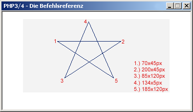 Mit imagepolygon() kann man auf einer Arbeitsfläche (im) ein Vieleck (Polygon)