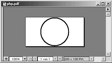 Mit pdf_circle() zeichnet man innerhalb eines PDF-Dokuments (PDF-Dokument) einen Kreis. Dabei wird mit den X-Y-Koordinatenpunkten (x-Koor und y-Koor) die Kreismitte angegeben. Der Radius (Radius) des Kreises ist dabei die Hälfte des Durchmessers.