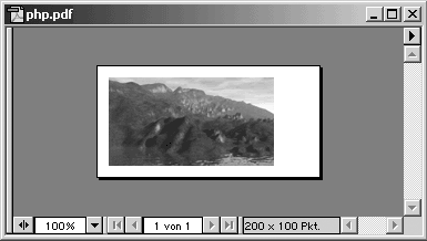 Mit pdf_open_tiff() liest man ein TIFF-Bild aus einer Datei (Dateiname) und stellt es dem PDF-Dokument (PDF-Dokument) zur weiteren Bearbeitung zur Verfügung. Im unteren Beispiel wurde ein TIFF-Bild in das PDF-Dokument geladen und mit pdf_place_image() an einer bestimmten Stelle positioniert. Diese Funktion sollten Sie in neuen Programmen nicht mehr verwenden. Benutzen Sie an ihrer Stelle die Funktion pdf_open_image_file().