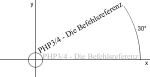 Mit pdf_rotate() dreht man innerhalb eines PDF-Dokuments (PDF-Dokument) das Koordinatensystem um eine bestimmte Winkelangabe (Winkel) in Grad.