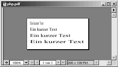pdf_show_xy ( $dokument, 'Ein kurzer Text', 10, 40 );