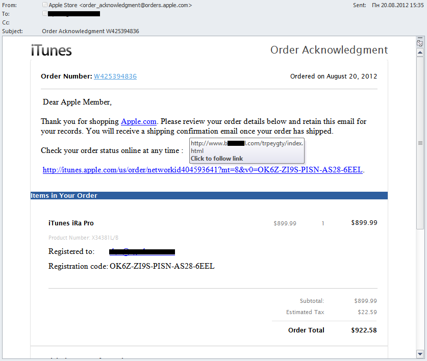 Die erste Versendung dieser Art registrierten wir im Juli. In diesem Fall war an die Mail, die wie eine Mitteilung über eine neue Aktion des größten Coupon-Services aussah, ein Zip-Archiv angehängt, das die ausführbare Datei „Gift coupon.exe“ enthielt. In Wirklichkeit handelte es sich bei der Datei um das Schadprogramm Trojan.Win32.Yakes.aigd. Alle Links in den Mails mit schädlichen Anhängen führten auf die Webseite von Groupon, wo keinerlei gefährliche Objekte platziert waren. Dieser Trick wurde von den Cyberkriminellen eingesetzt, um die Nutzer in Sicherheit zu wiegen.