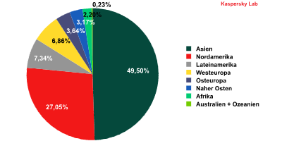 Verteilung der Spam-Quellen nach Ländern und Regionen.