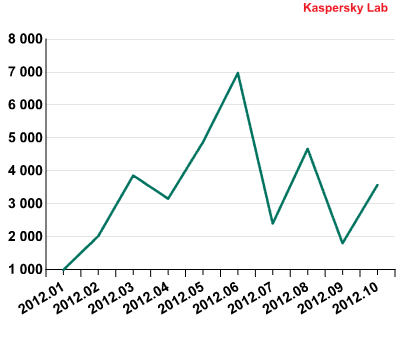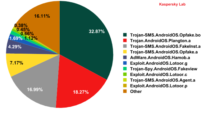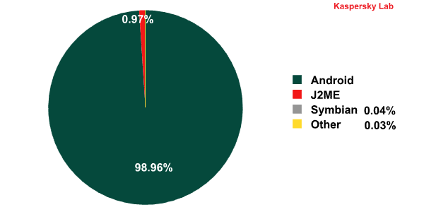 Im Jahr 2012 investierten die Virenschreiber ihre Energien vor allem in die Entwicklung von Schadprogrammen für Android. Das führte sowohl zu einer quantitativen als auch qualitativen Zunahme von mobilen Schädlingen für diese Plattform. 99 Prozent der von Kaspersky Lab monatlich entdeckten Schädlinge für mobile Plattformen richteten sich gegen Android.