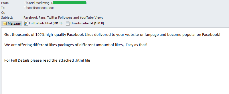 Im November wandte sich eine interessante Versendung an Unternehmen und Heimanwender, die es im sozialen Netzwerk Facebook zu Berühmtheit bringen möchten: In den Mails boten die Spammer „Gefällt mir“-Klicks zum Kauf an.