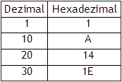 Das im alltäglichen Leben verwendete Zahlensystem ist das Dezimalsystem mit den Ziffern „0“ bis „9“. Beim Hexadezimalsystem (kurz ‚Hex’) werden dagegen 16 Ziffern benutzt, von „0“ bis „9“ und von „A“ bis „F“. Die folgende Tabelle zeigt einige Beispiele, wie man Dezimalzahlen in Hexadezimalzahlen ‚übersetzt’.