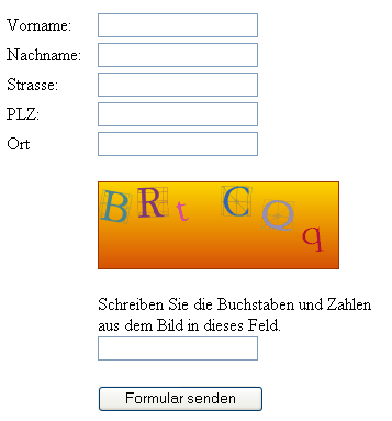 Im folgenden Beispiel sehen Sie ein solches Captcha. Es erzeugt wahllos