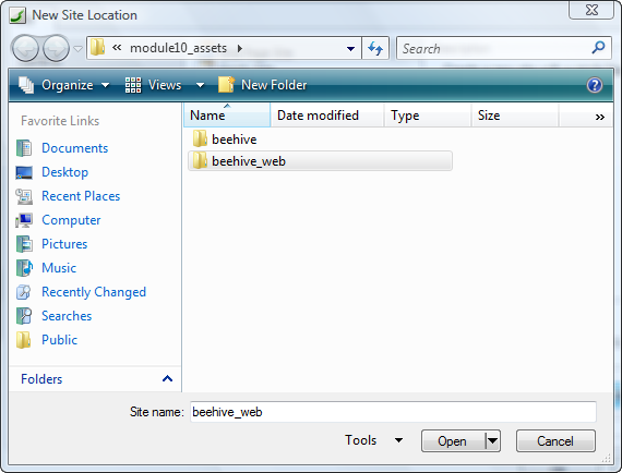 Open Expression Web 3 and choose Site > New Site. From the Options that appear, select the One Page Site Option. Navigate to the folder associated with this module by clicking Browse.