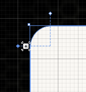 Now look back at the upper left corner of the rectangle you just drew and note the dotted lines. By clicking and dragging these lines, you can visually edit the corner radius of the rectangle. Note that as you drag the dotted lines you can see the values change in the RadiusX and RadiusY textboxes in the Appearance pane. This is where you can enter exact values if necessary. For this example 40 is used for each radius.For a precise amount, you can enter 40 into the RadiusX and RadiusY textfields.