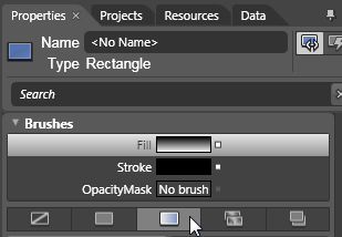Click Fill in the Brushes pane of the Properties panel. If you do not see the Brushes pane, you may need to scroll up in the Properties panel. Then click the Gradient brush icon. The rectangle is automatically filled with the default black and white gradient, or whatever gradient was last used.