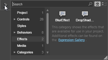 Click and hold on Assets, at the bottom of the Tools panel and then select Effects.