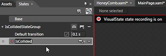 Before working with the Visual State Manager it will help to understand how the Honeycomb’s appearance is connected to the collision detection code. As you’ll see, the consistent naming of objects and actions is always very important to maintain.