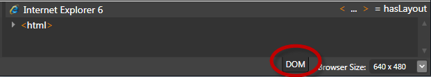 In the bottom right corner of the SuperPreview window, click the tab labeled DOM and a new section will expand. (If this section was already open, simply click again to open it.)