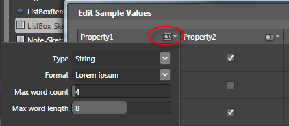 In the column for Property2, click the Change property type menu and change this value to String. This will place Lorem ipsum (Placeholder text) into this column. Click OK.