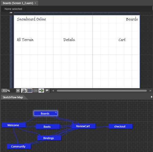 In the SketchFlow Map panel, double-click on the Boards screen to open it.