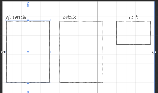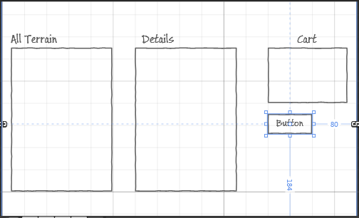 Click the Assets panel, then click Styles > SketchStyles. Choose the style named Rectangle-Sketch, then click and drag on the artboard to create three rectangles, two approximately the same size, and one smaller rectangle underneath Cart.