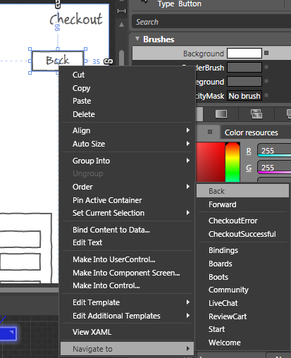 Press F5 to build the application, when the SketchFlow player appears, click on the Boards page. Click the Checkout button (we have already enabled this button to go to the Checkout page).