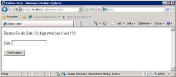 $_POST['geraten']), wird diese mit der zu erratenden Zahl verglichen und eine entsprechende Rückmeldung