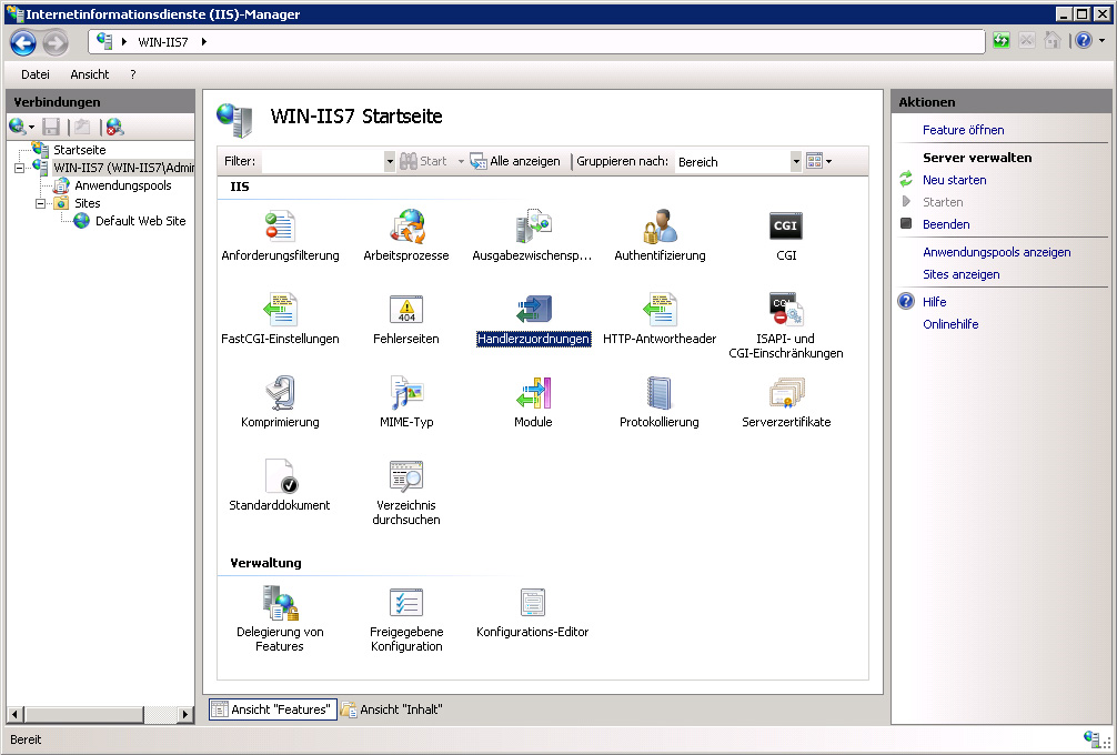 Abbildung 1.2 Auswahl der Handlerzuordnungen in IIS-Manager