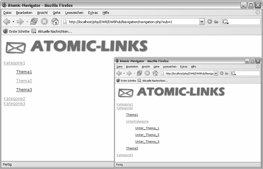 Sie können durch den Einsatz von <img>-Tags die Navigation beliebig mit grafischen Elementen versehen.