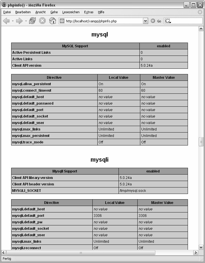 Bild 7.1: MySQL- und MySQLi-Erweiterung erfolgreich installiert.