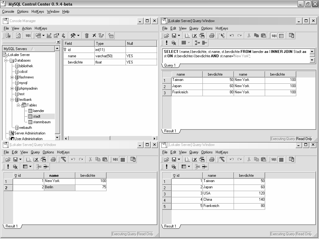Bild 7.6: Tabellen der Länder und Städte – samt Vergleich
