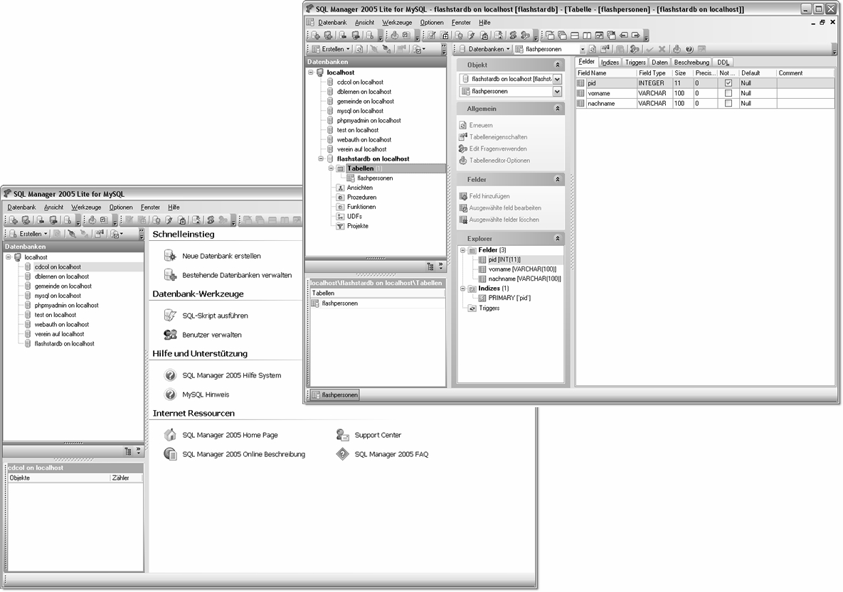 Alle wichtigen Operationen, wie das Anlegen von Datenbanken und Datenbanktabellen oder die Benutzerverwaltung, sind hiermit komfortabel zu verwalten, ohne dass Sie sich mit den Kommandozeilenwerkzeugen und Befehlen auseinandersetzen müssen.