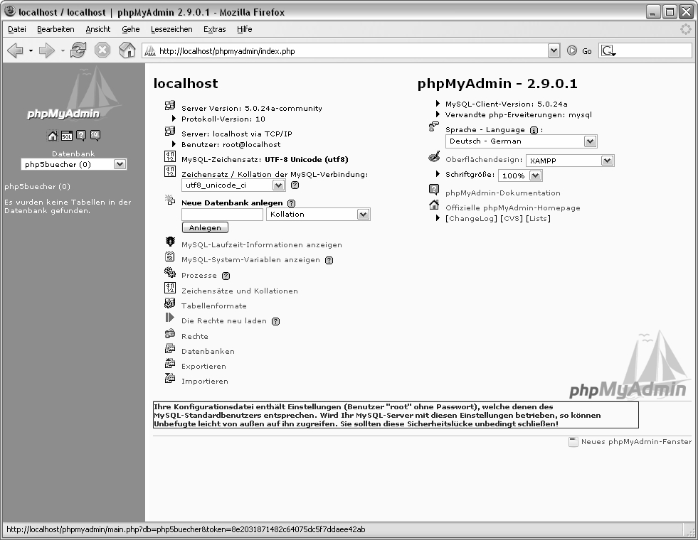 Hinweis: Verfügbar ist phpMyAdmin unter www.phpmyadmin.de.
