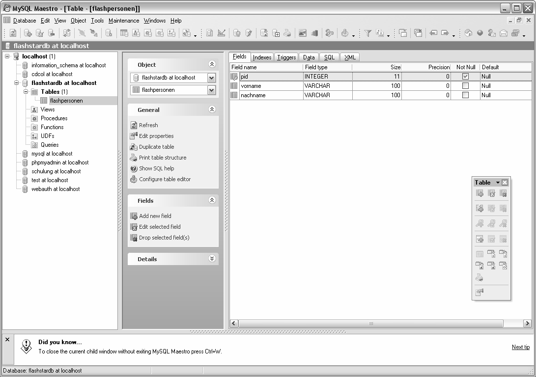 Hinweis: MySQL Maestro kann unter folgender URL bezogen werden: www.sqlmaestro.com.