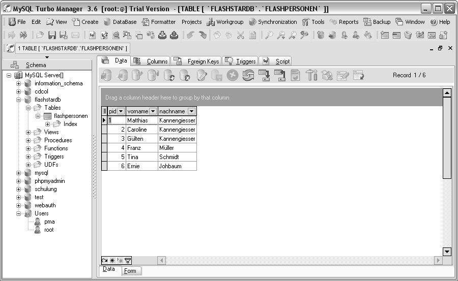 Hinweis: MySQL Turbo Manager kann unter folgender URL bezogen werden: www.mentattech.com.
